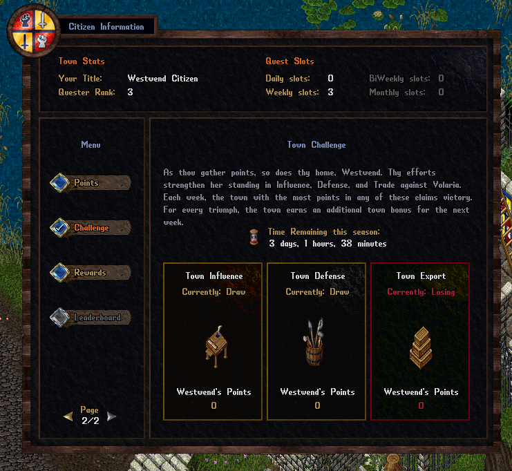 - Additional bonuses are granted based on category wins during town challenges (viewable in the citizen info gump).